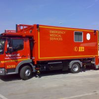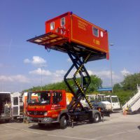 Ambulanzfahrzeug zum Übernehmen von Schwerverletzten oder behinderten Passagieren aus Flugzeugen.